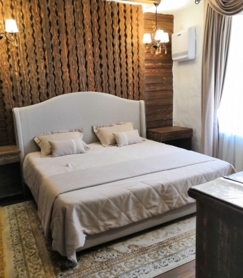 | Категория размещения | Номер «Люкс»2-х местный (6 номеров)холл, спальня, 2-х спальная кровать (от 160-200см), ванная комната | Номер «Делюкс» 2-х местный (3 номера):холл, 2 кровати (по 120см), ванная комната | Номер «VIP» 2-х местный + 1 доп. место (5 номеров) холл, спальня - гостиная, столовая, 2-х спальная кровать, диван, ванная комната. |
